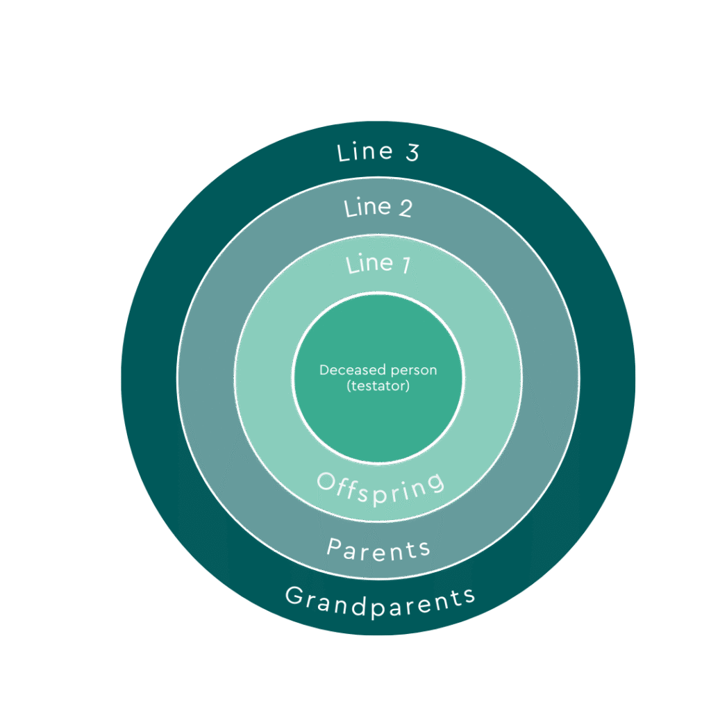 Inheritance always begins with the closest line. Only when no eligible heirs exist in a line, the next line comes into play.